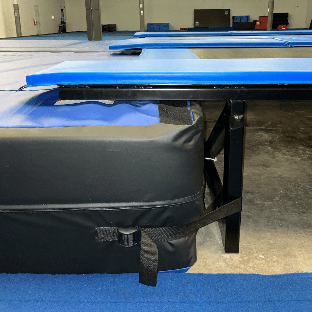 Victory Power Bound Landing Mat with Tunnel technology (shown in picture) provides safety and absorbency to impact when tumbling off the Victory Power Bounder.